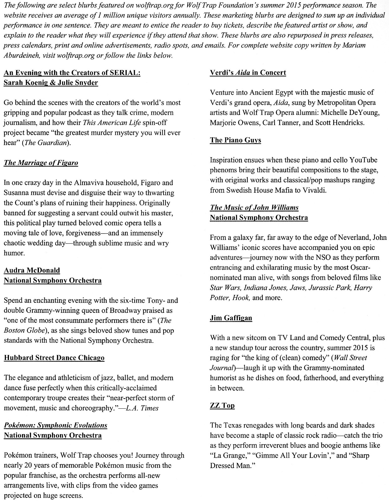 Wolf Trap Program Book Summer 2015